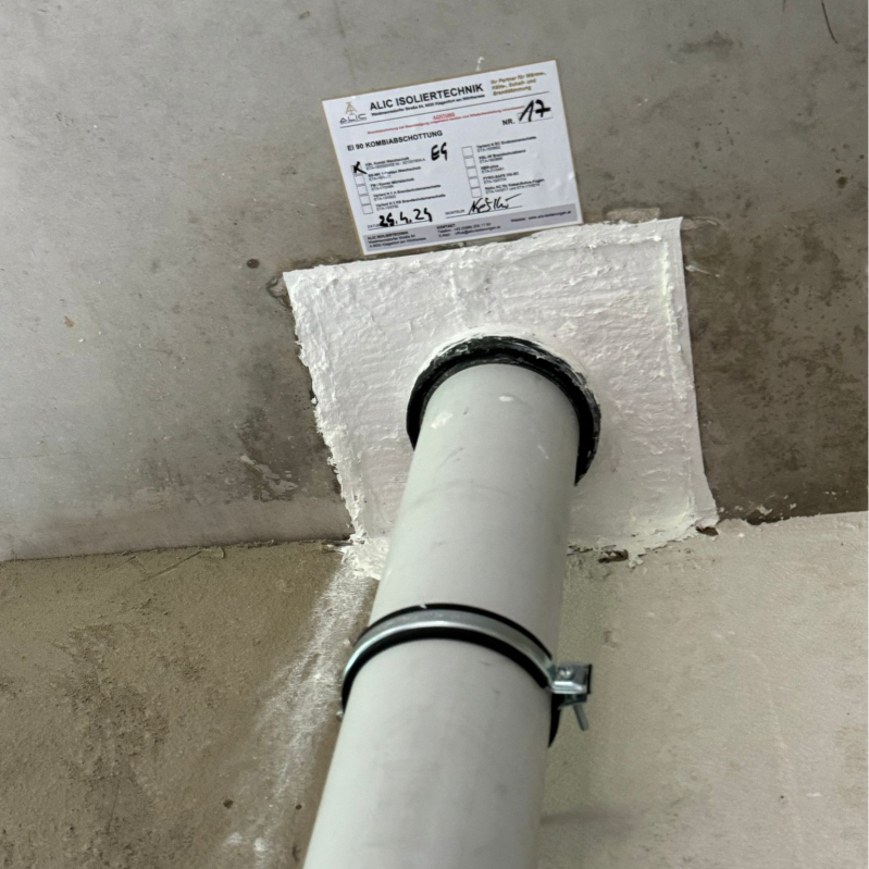 - Brandschutz bei Rohrdurchführungen: Unsere Systeme verhindern die Ausbreitung von Feuer und Rauch durch Rohrdurchführungen und Installationsöffnungen.